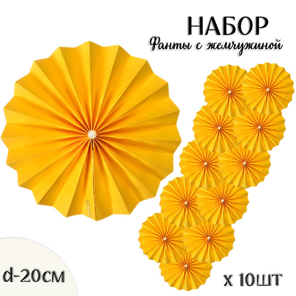 Фанты с жемчужиной НАБОР 10шт х 20см, ярко-желтый