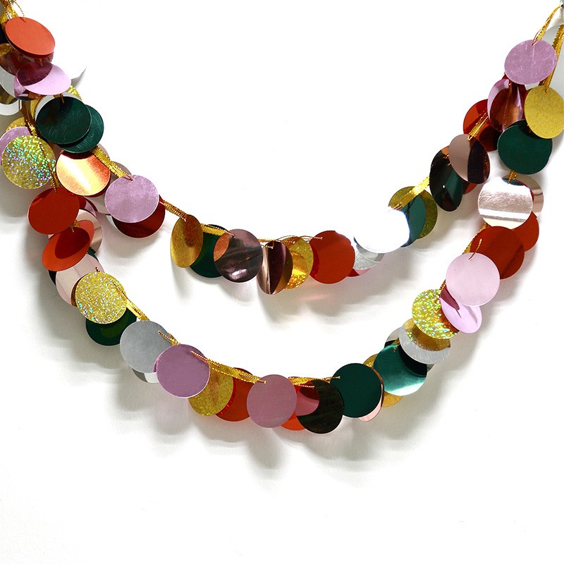 Декоративная гирлянда представляет собой расположенные на нити кружочки пайеток.