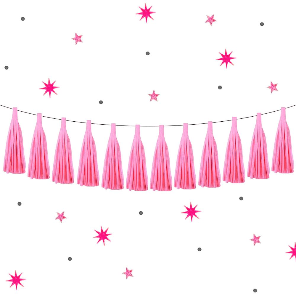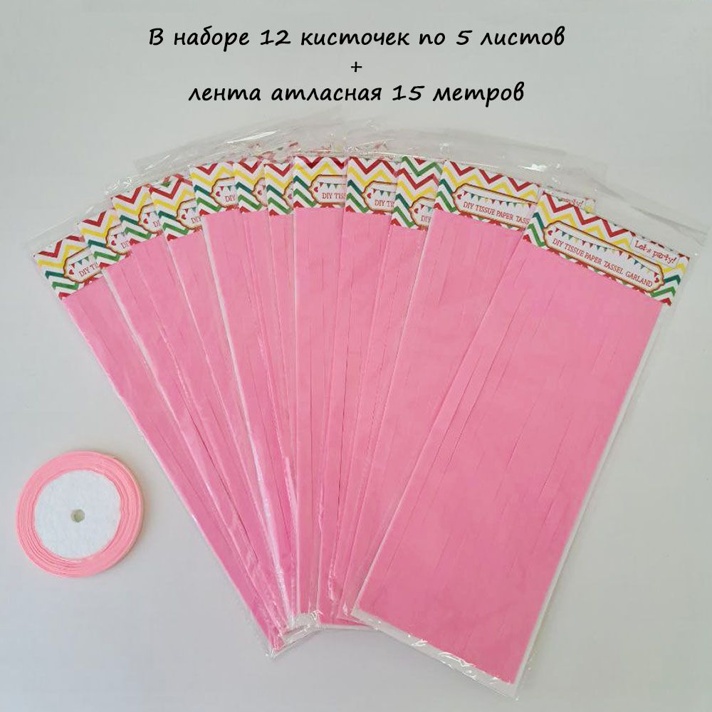 Гирлянда тассел 12 кисточек по 5 листов, розовый