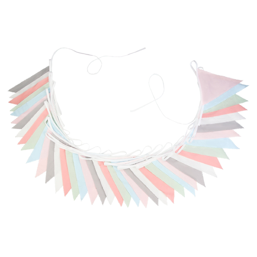 Гирлянда тканевая односторонняя № 16, 10 м - 1 шт. Общая длина гирлянды - 10 м. Расстояние между флажками 10 см. Длина флажка 19 см, ширина флажка 14 см.