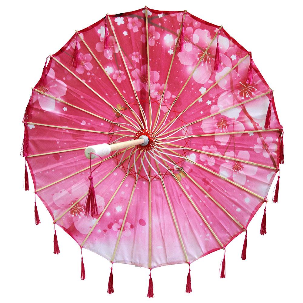 Китайские тканевые зонтики цветочные с кисточками 82х54 см
