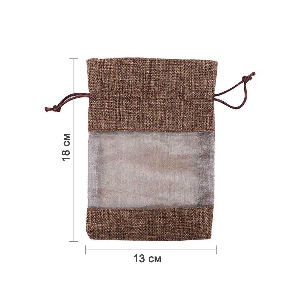 Мешочек из мешковины и органзы 13х18 см темно-коричневый