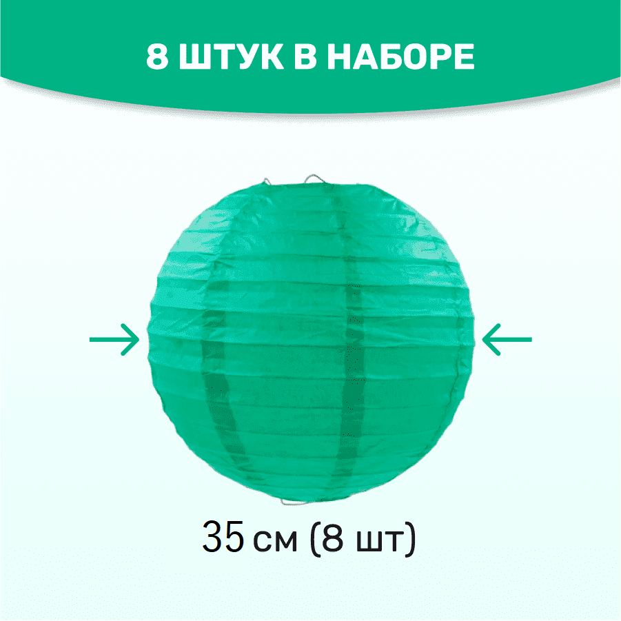 Комплект подвесные фонарики 35 см х 8 шт, изумрудный