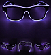 Светодиодные очки имеют прозрачную оправу, прозрачные линзы. Работают от встроенного аккумулятора, зарядка от USB.