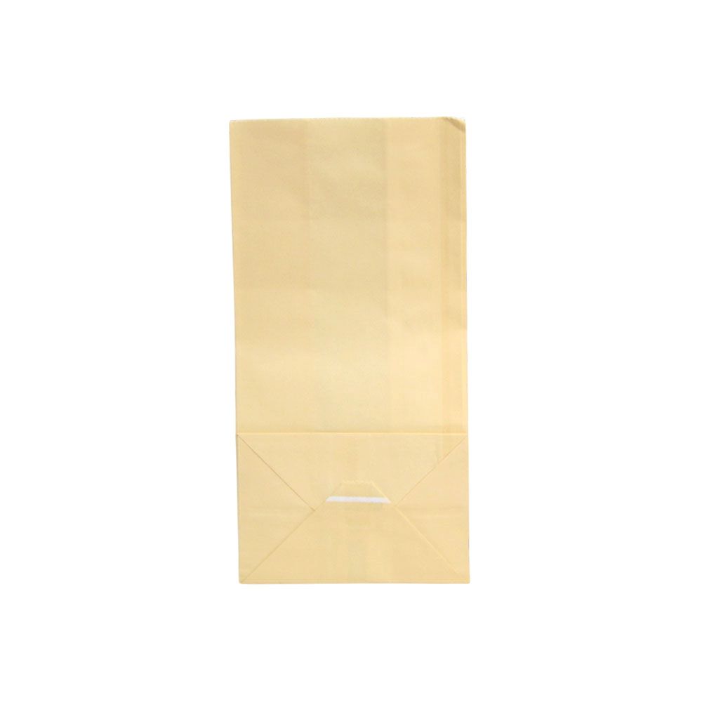 Подарочный пакет из крафтовой бумаги пастельного оттенка с белыми бумажными ручками и белой внутренней стороной.
