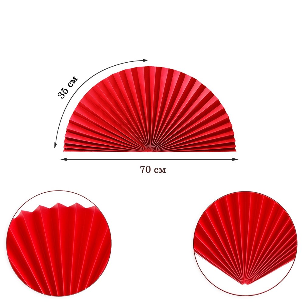 Веер-гармошка 160г/м 70 см, красный
