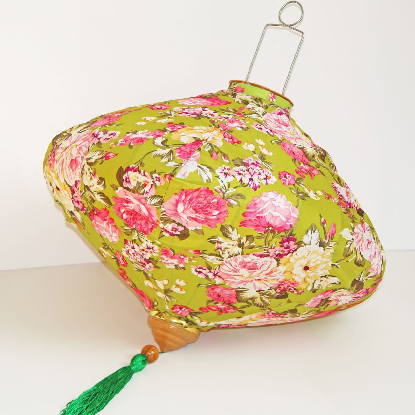 Это традиционные подвесные фонарики ручной работы, изготовленные из шелкового материала с элегантным цветочным узором, которые делают его изысканным и красивым.